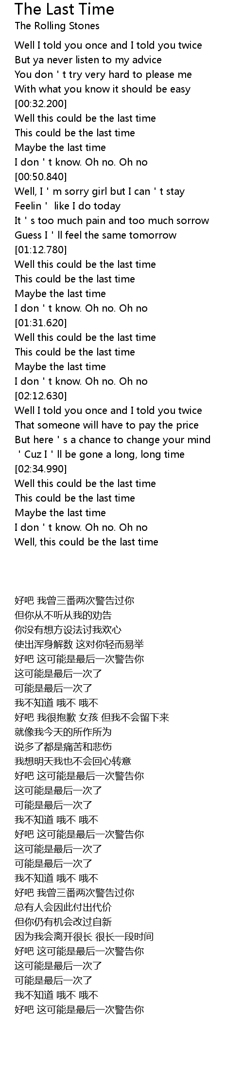 | [00:34.400] | Well this could be the last time |