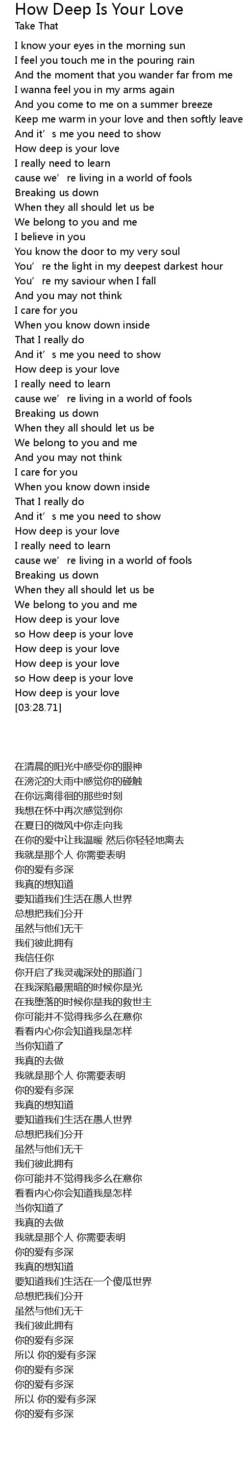 | [00:14.36] | I feel you touch me in the pouring rain |