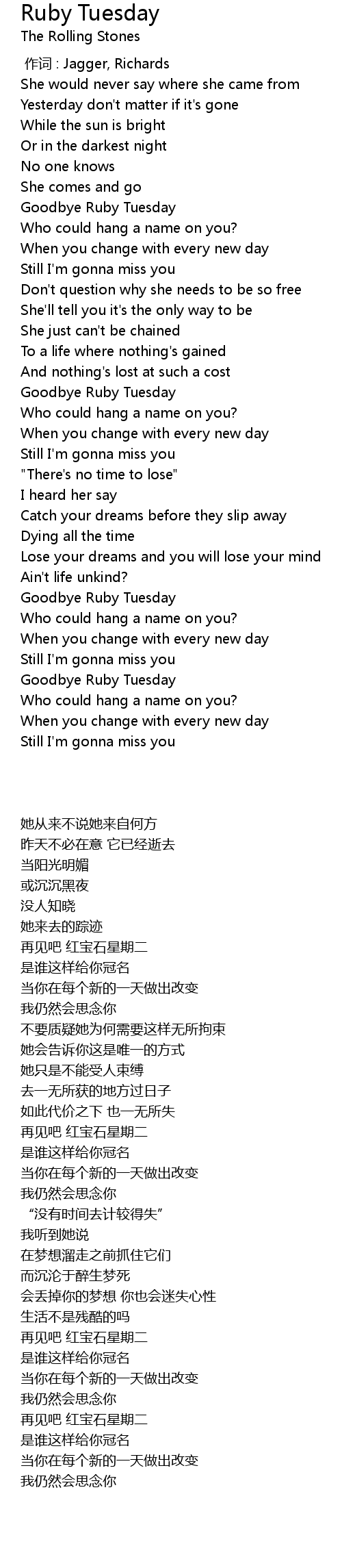 | [02:46.610] | Goodbye Ruby Tuesday |