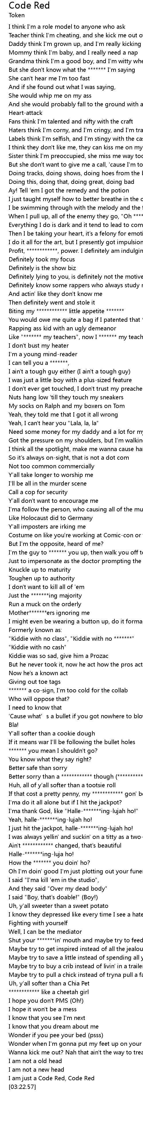 | [03:19.81] | I am just a Code Red, Code Red |