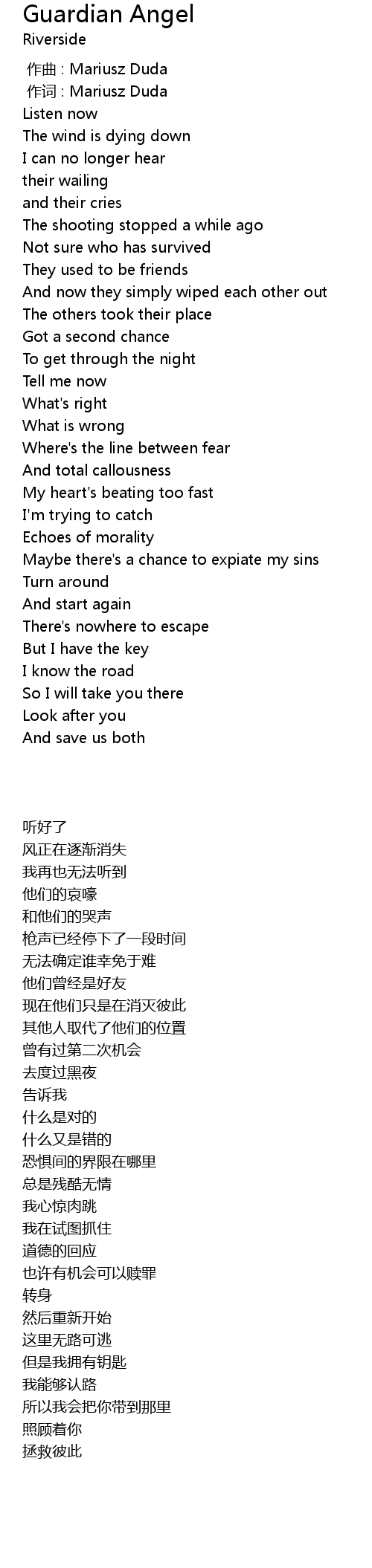 | [00:01.000] | 作词 : Mariusz Duda |