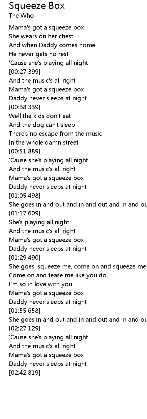 | [00:34.379] | Mama' s got a squeeze box |