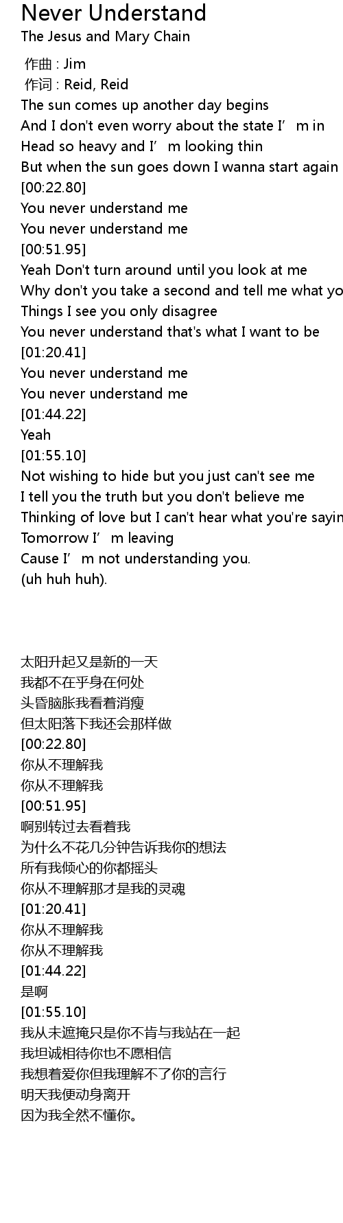 | [01:17.39] | 你从不理解那才是我的灵魂 |