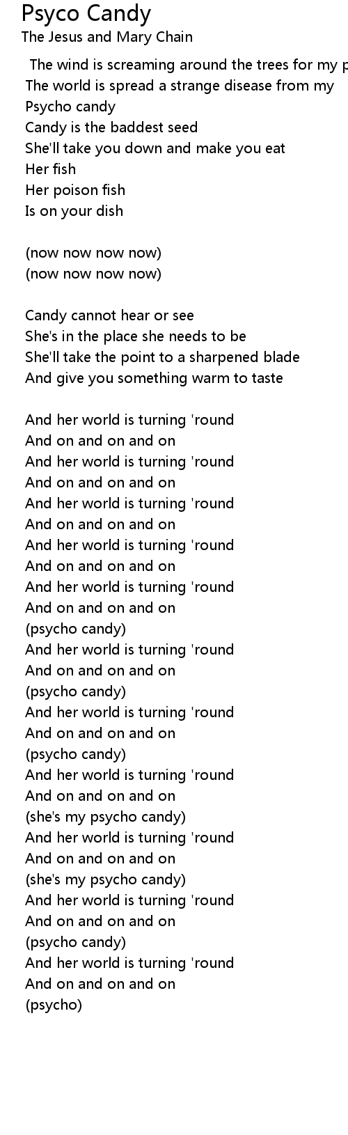 The wind is screaming around the trees for my psycho candy |