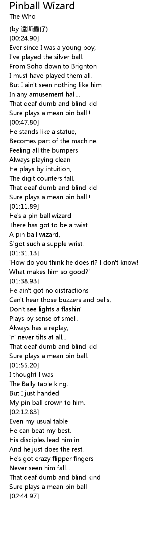 | [01:18.86] | He's a pin ball wizard |