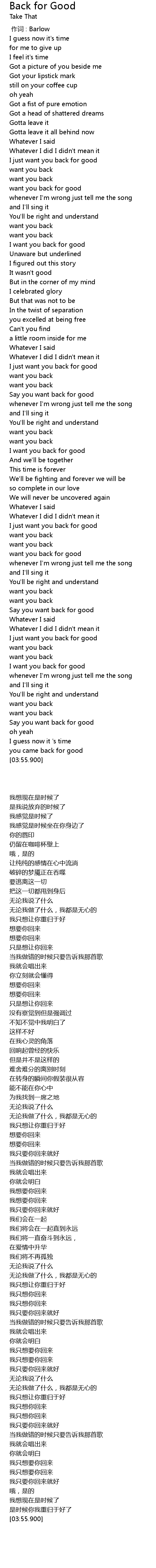 | [03:34.900] | Say you want back for good |