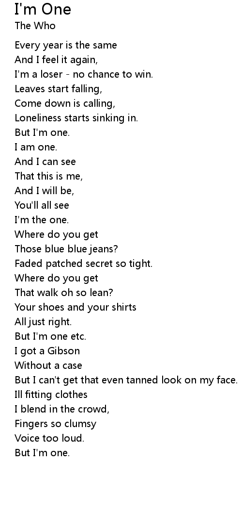 But I'm one etc. |
