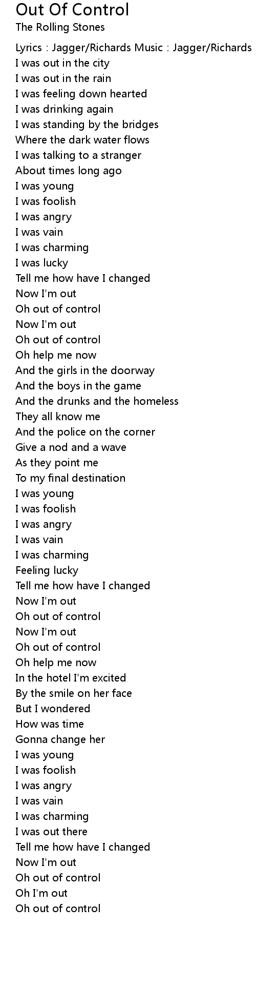 | Oh out of control | |