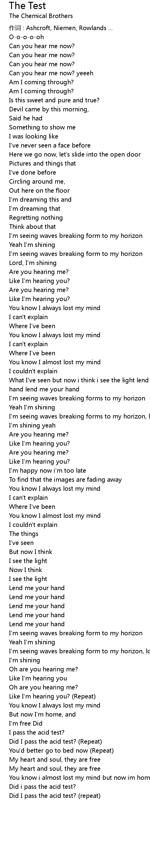 | Did I pass the acid test? (repeat) |