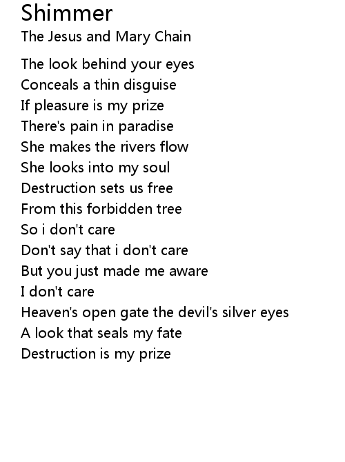 | Heaven's open gate the devil's silver eyes | |