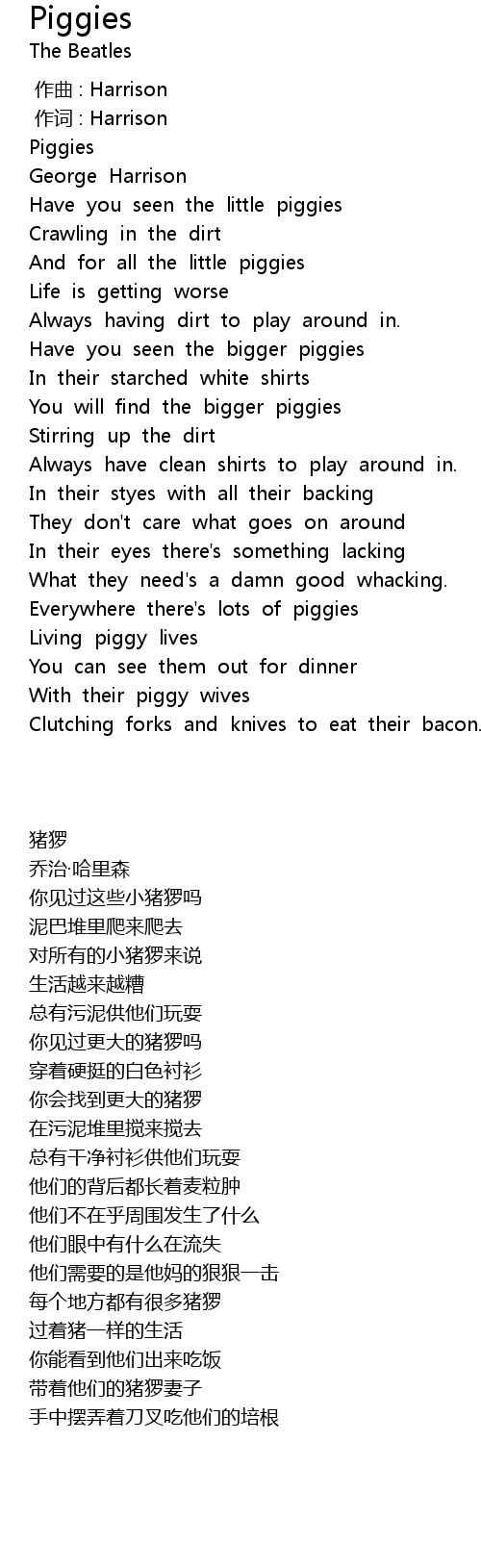 | 歌曲 | Piggies |