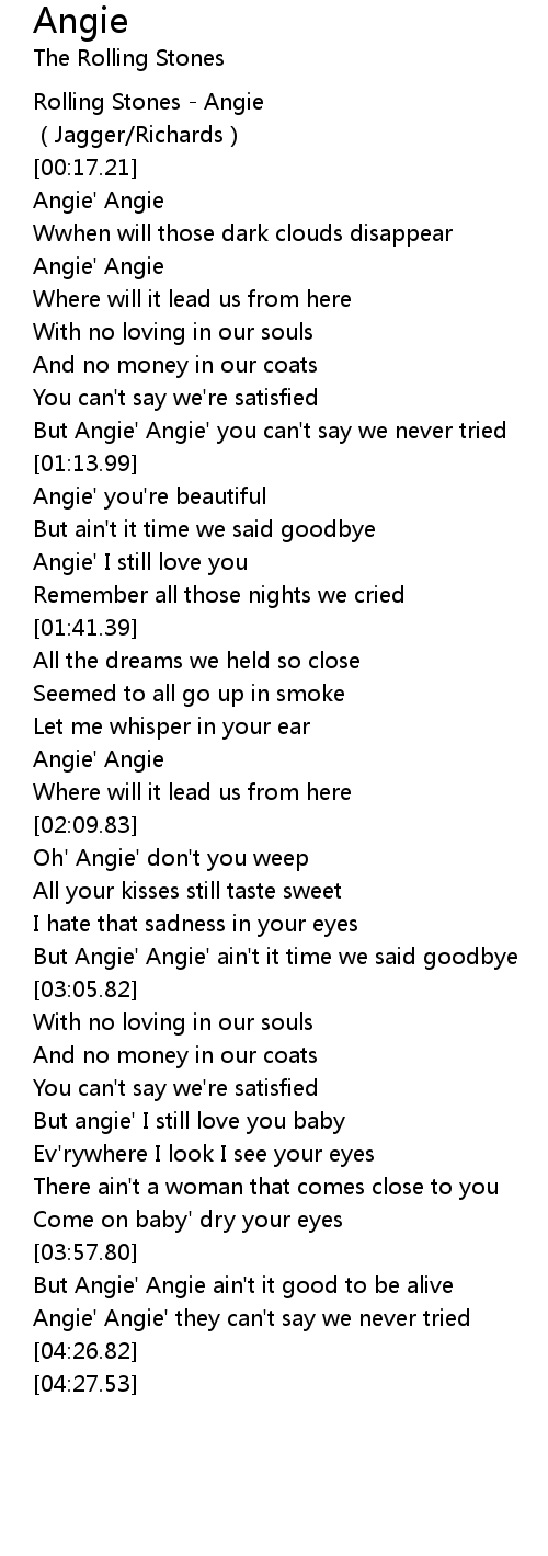 | [02:51.02] | But Angie' Angie' ain't it time we said goodbye |