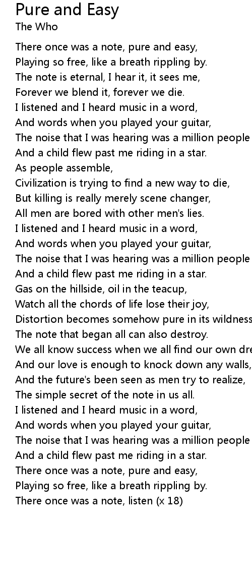 Pure and Easy 歌词