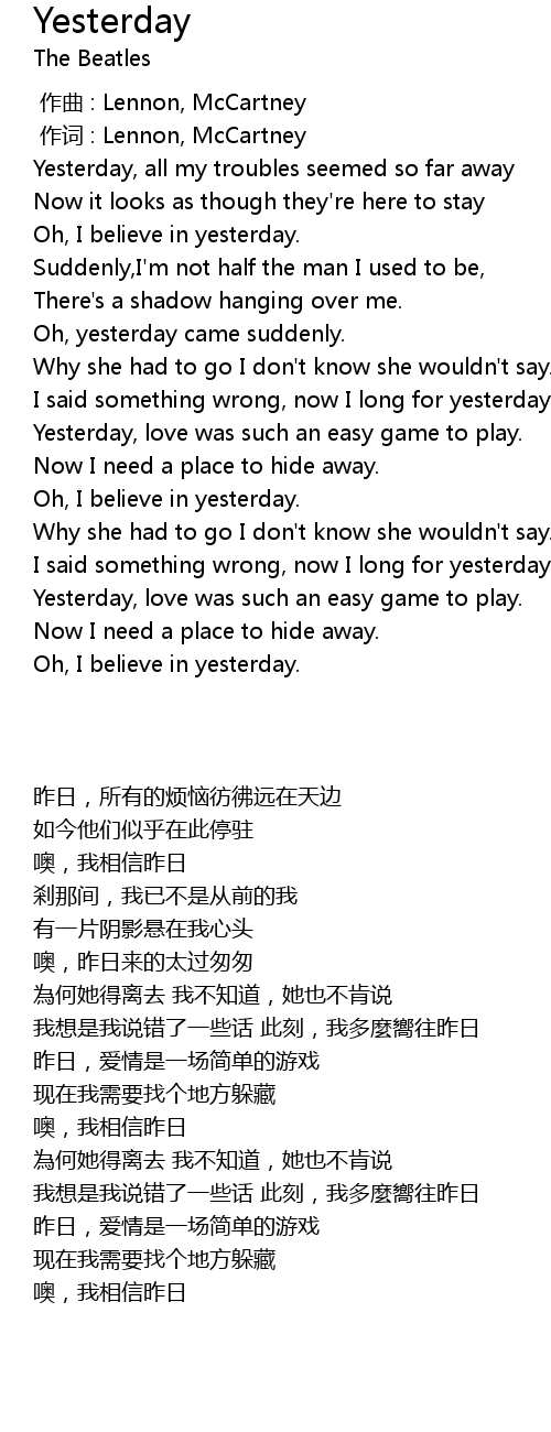 | [00:01.00] | zuo ci : Lennon, McCartney |