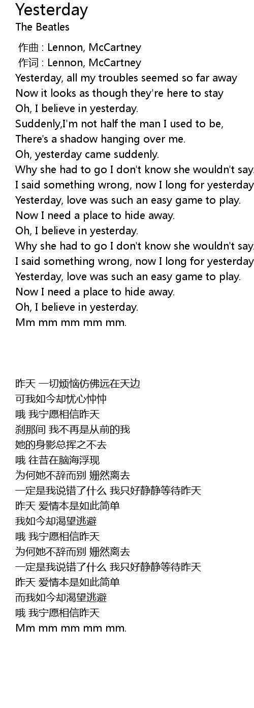 | 歌曲 | Yesterday |
