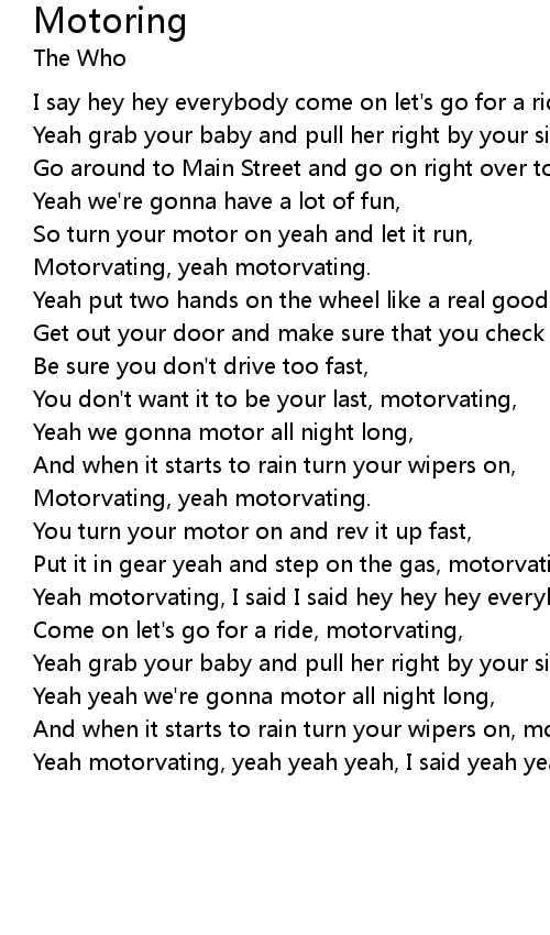 Yeah motorvating, yeah yeah yeah, I said yeah yeah, motorvating.