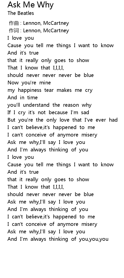 | [01:37.242] | Ask me why, I' ll say I love you |
