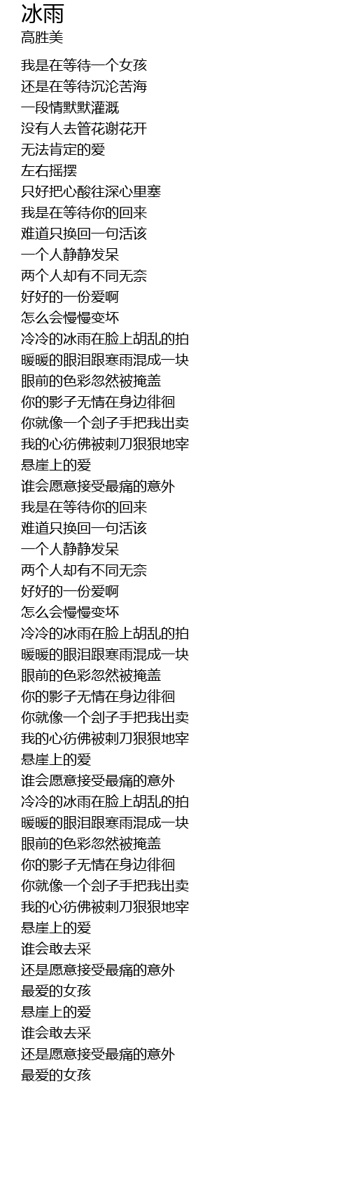 | [03:17.67] | 冷冷的冰雨在脸上胡乱的拍 |