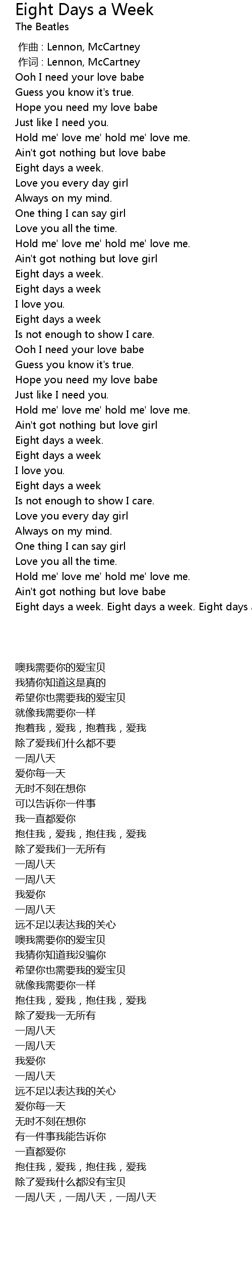 | 歌曲 | Eight Days a Week |