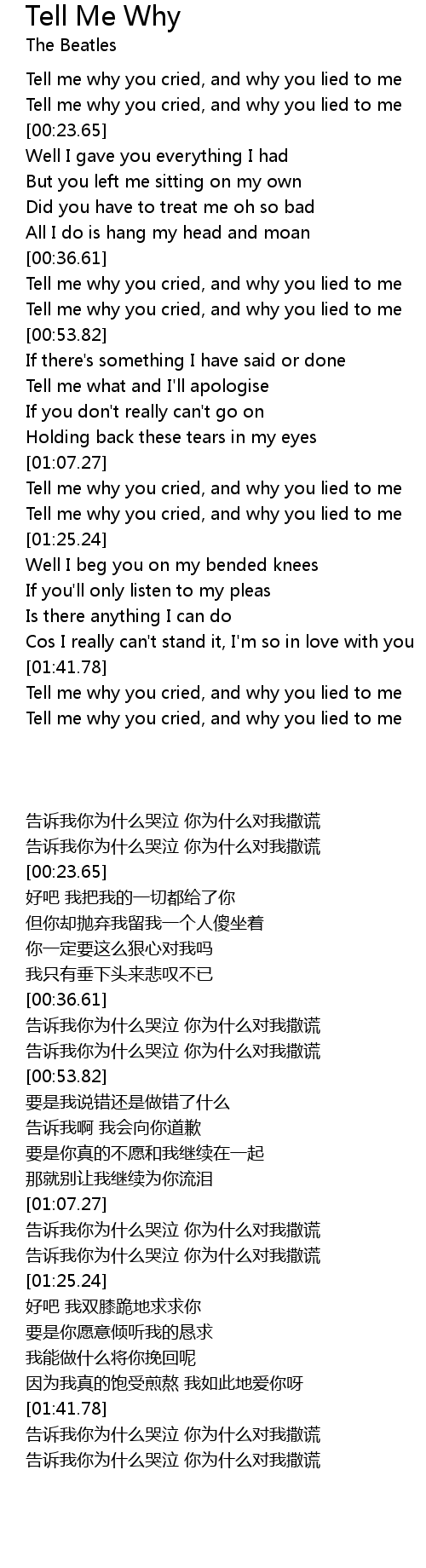 Tell me why you cried, and why you lied to me |