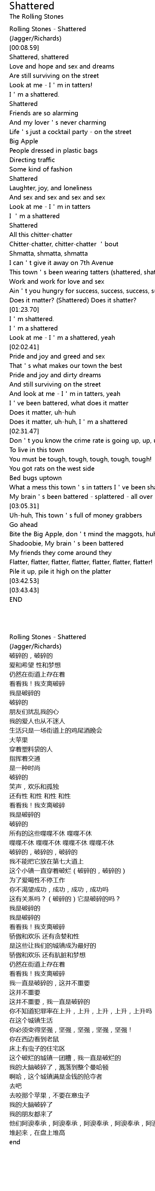 | [01:15.00] | Does it matter? Shattered Does it shatter? |
