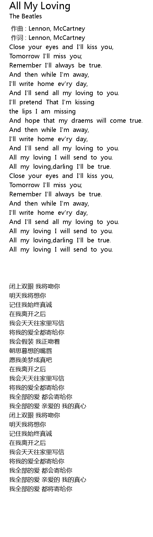 | [01:44.95] | All my loving, darling I' ll be true. |