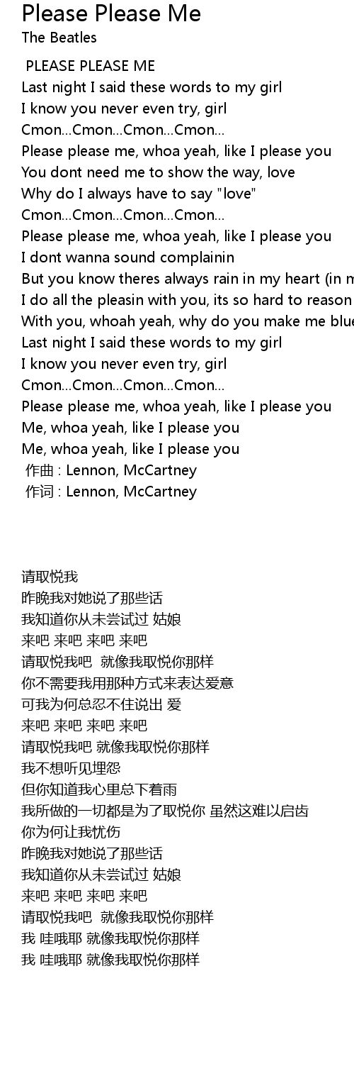 | [00:55] | Please please me, whoa yeah, like I please you |