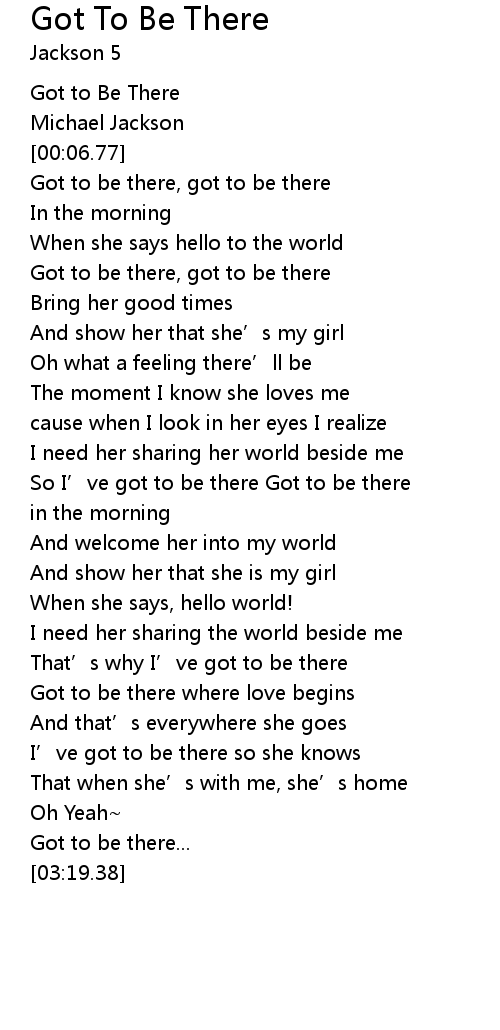 | [01:18.80] | So I' ve got to be there Got to be there |