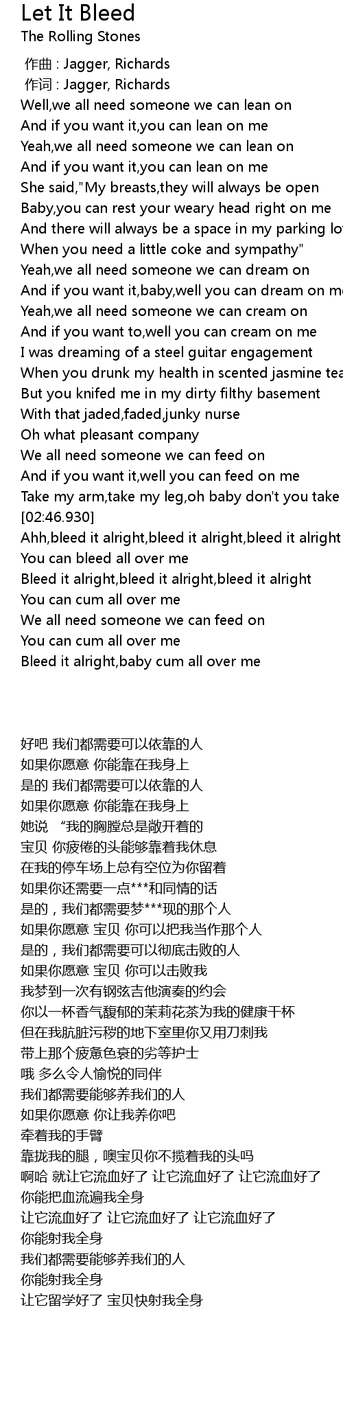 | [02:46.944] | Ahh, bleed it alright, bleed it alright, bleed it alright |