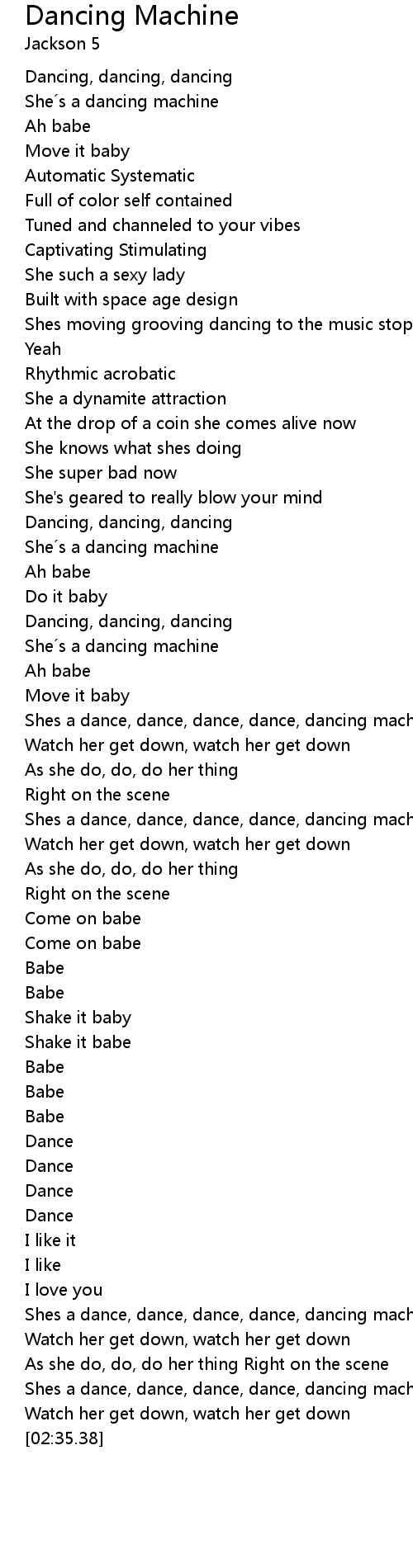 | [01:36.27] | Shes a dance, dance, dance, dance, dancing machine |