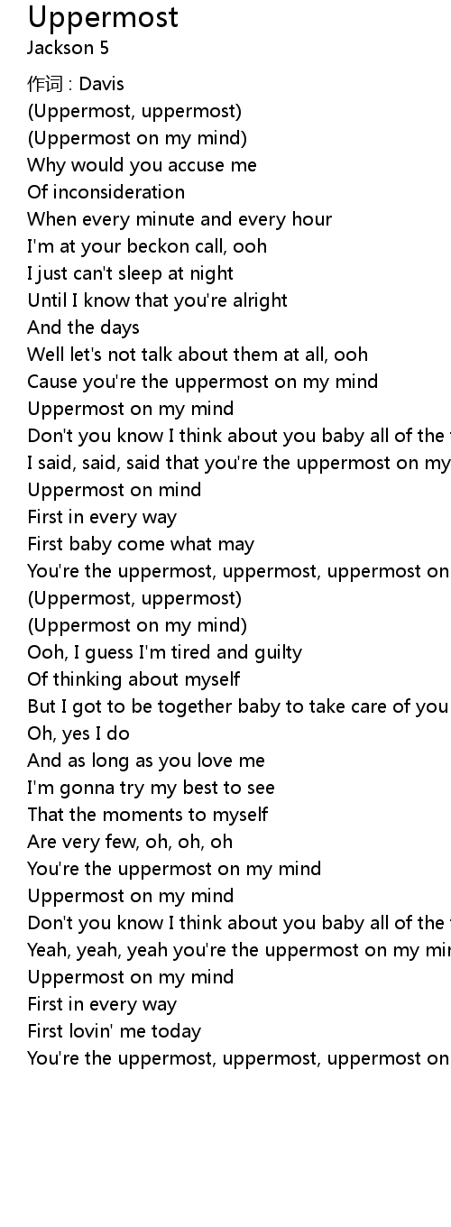 | You' re the uppermost, uppermost, uppermost on my mind yeah, yeah |