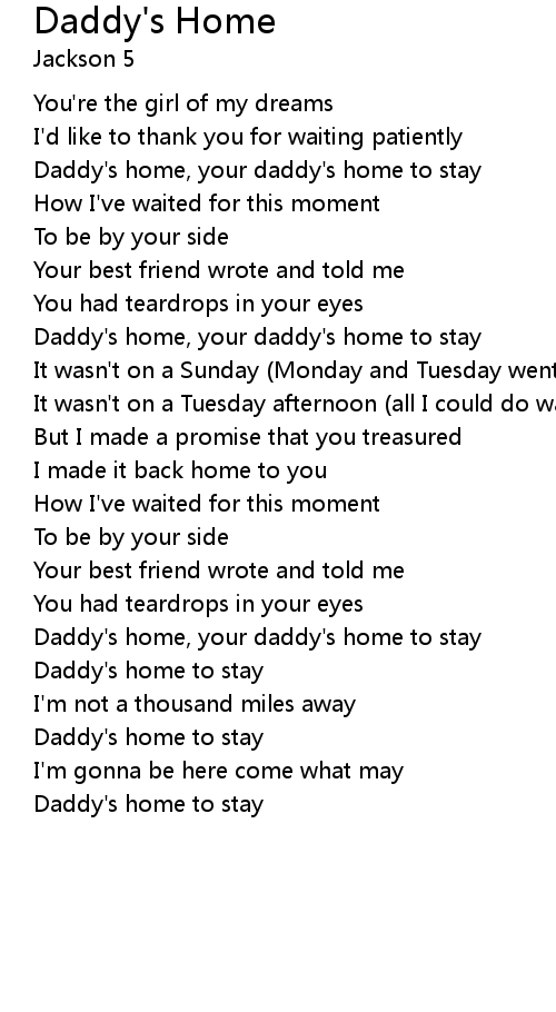| Daddy's home, your daddy's home to stay | |