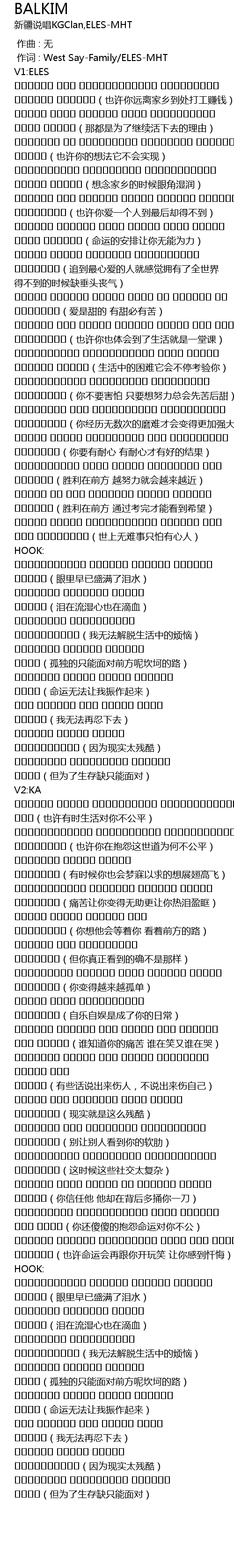 | [00:01.000] | 作词 : West Say-Family/ELES-MHT |