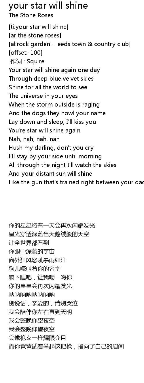 | [01:42.13] | 你的星星会再次闪耀发光 |