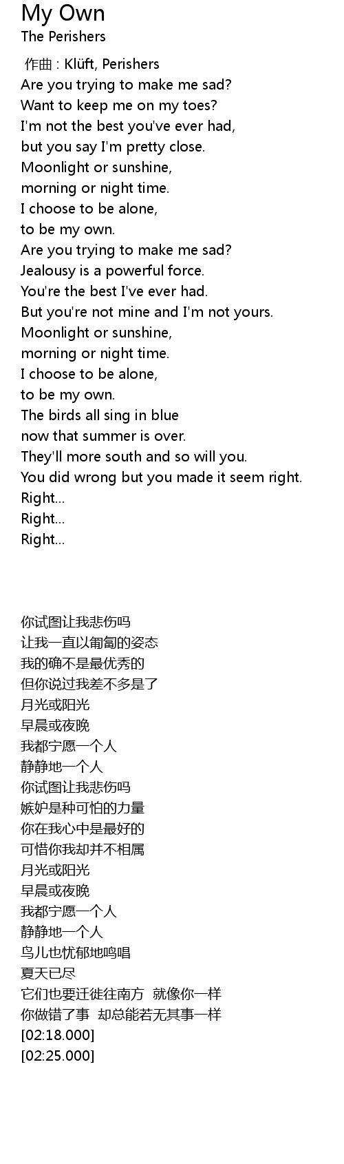 | [01:25.000] | But you're not mine and I'm not yours. |