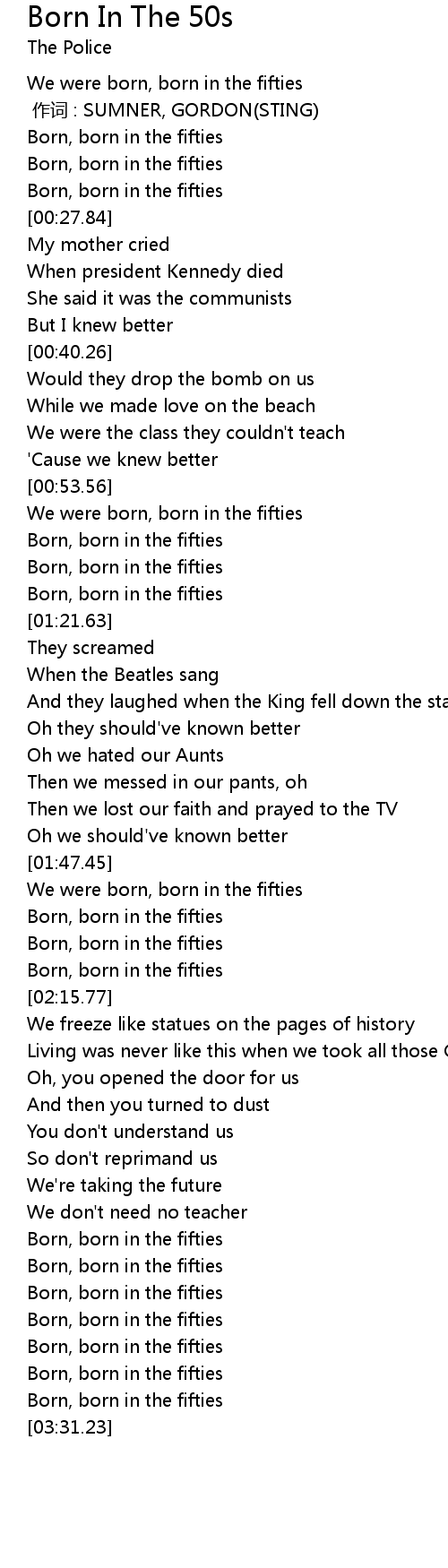 | [03:03.90] | Born, born in the fifties |