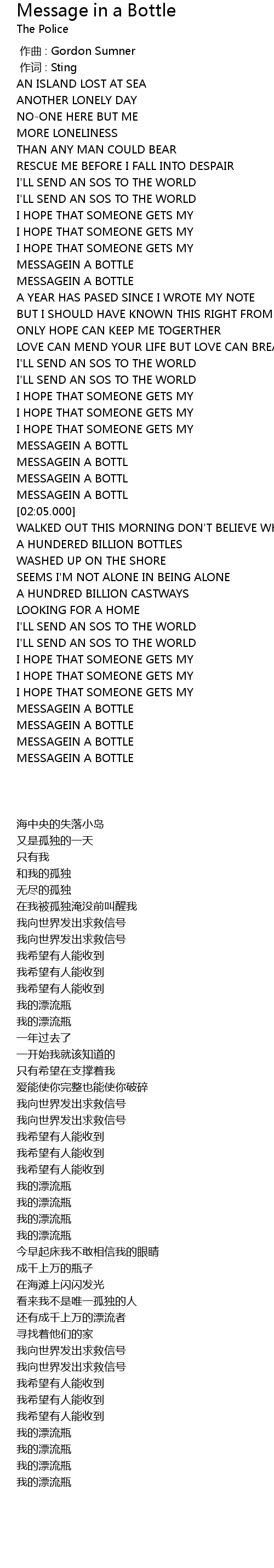 | [02:51.000] | MESSAGEIN A BOTTLE |
