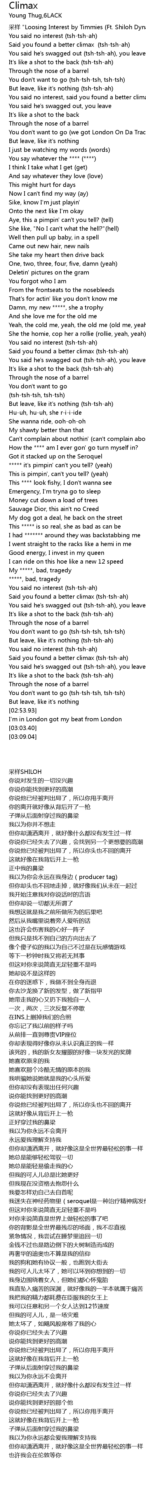 | [02:22.40] | Said you found a better climax (tsh-tsh-ah) |
