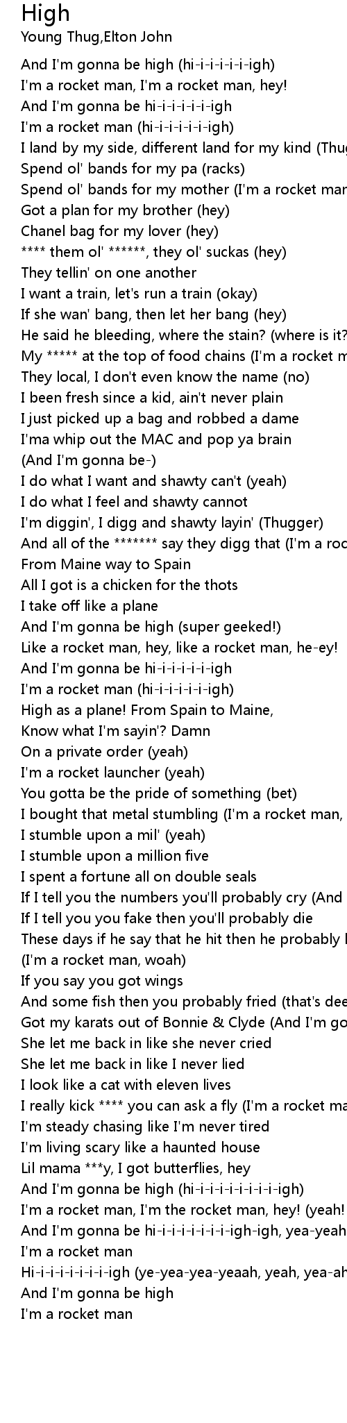 [00:52.60] My ***** at the top of food chains (I'm a rocket man)