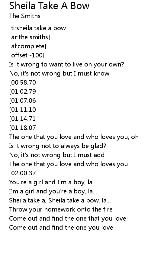 [00:25.33][01:07.06] Sheila take a, Sheila take a bow