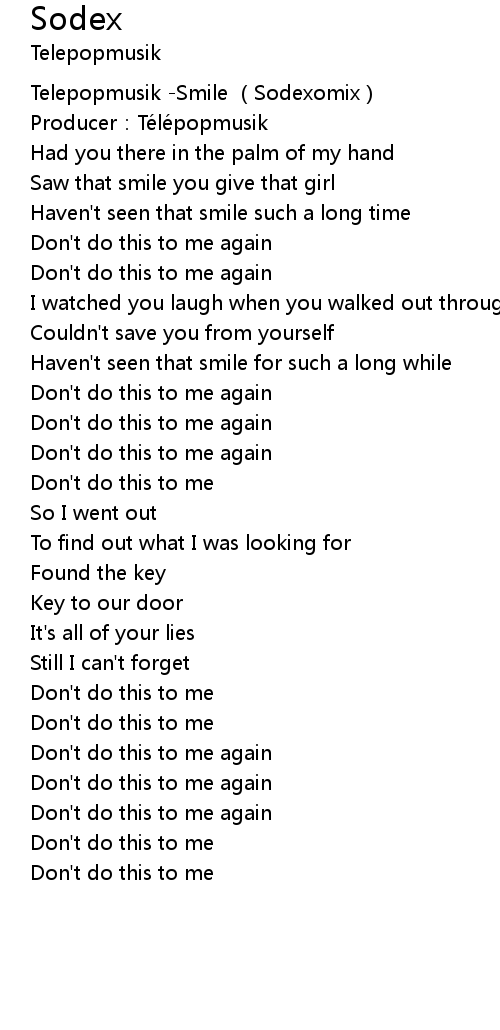 | [00:00.565] | Telepopmusik -Smile (Sodexomix) |