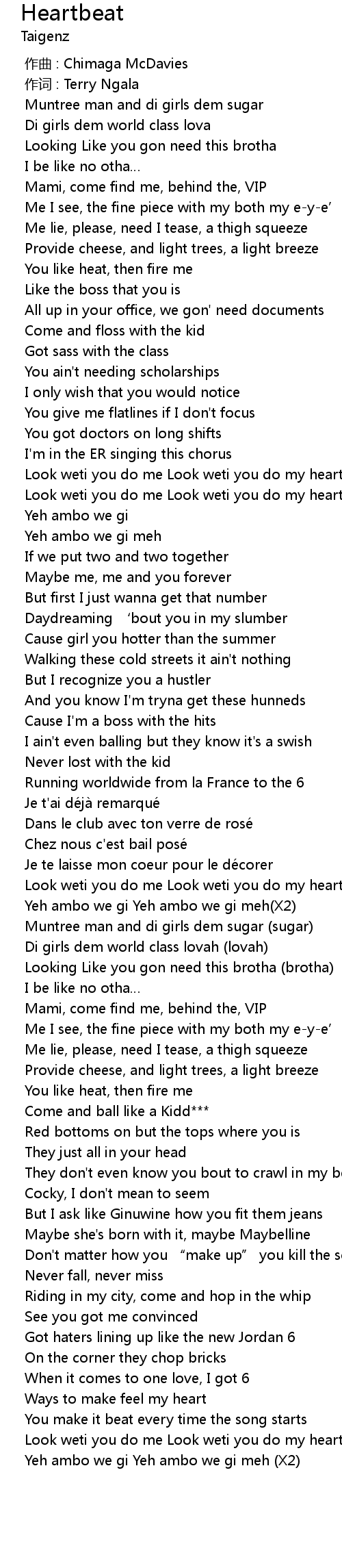 | [03:19.674] | Look weti you do me Look weti you do my heartbeat X2 |