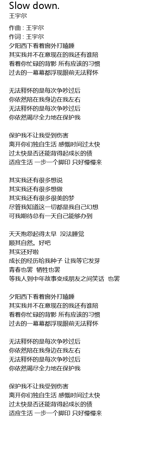 | 歌曲 | Slow down. |