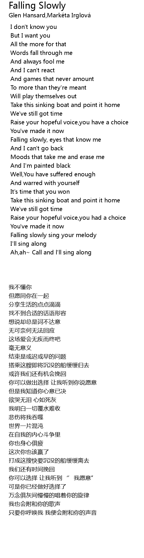 Falling slowly sing your melody |