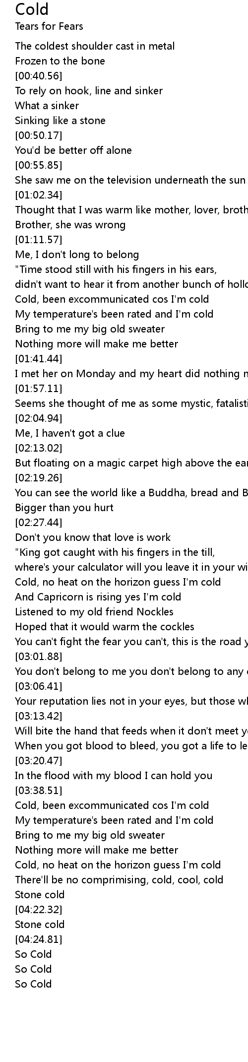 [02:38.55] Cold, no heat on the horizon guess I'm cold
