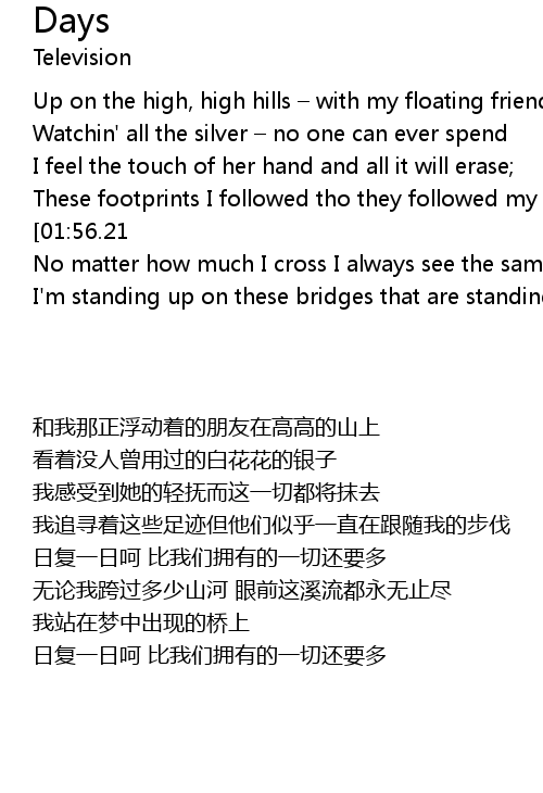 | [00:58.20][01:56.21] | Days,days days be more than all we have. |