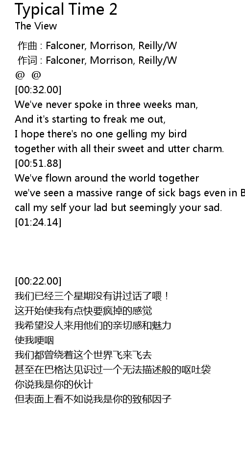 | [00:01.00] | 作词 : Falconer, Morrison, Reilly/W |