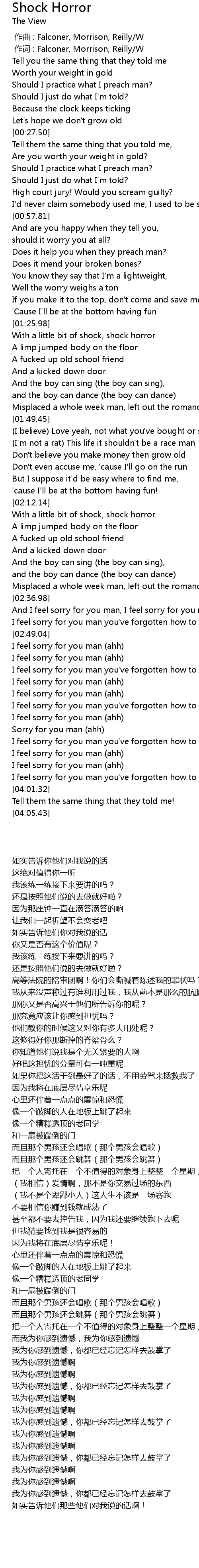 | [01:26.97] | With a little bit of shock, shock horror |
