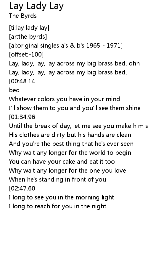 Lay, lady, lay, lay across my big brass bed, ohh |