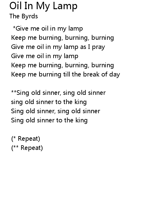 | *Give me oil in my lamp | |